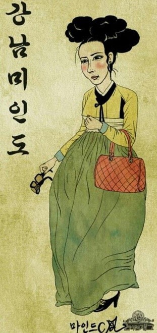 국내는 워낙 곡선형의 갸름한 얼굴형을 선호하는 것도 있고, 갸름하고 동안의 특출한 미인들이 미디어에 자주 나오니까 일반 여성들이 따라 하고 싶었던 욕구가 컸던 결과 같습니다. 그러나 센스없이 수술만 하는 통에 강남미인 트렌드라는 대참사를 만들어 낸 것이 아닐까요. 물론 당시에는 너도 나도 그러한 스타일을 따라하느라 화장법부터 헤어스타일까지 비슷하게 꾸민게 유행이었습니다. 이후 헤어롤을 달고 다니는 스타일이 유행한 것처럼 말이죠. 여성들은 그것이 이쁘거나 말거나 남들이 하면 따라하고 싶은 심리가 있으니까요.